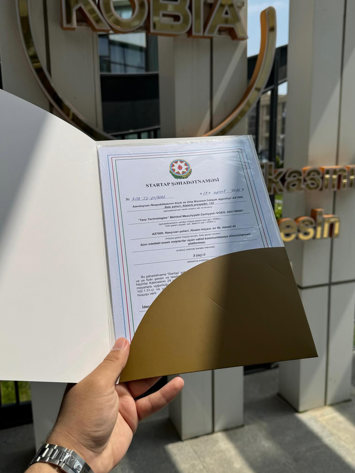 SABAH qrupları Azərbaycan Texniki Universitetinin (AzTU) 3-cü kurs tələbəsi Kənan Rzayevin təsis etdiyi “ChatX” startap layihəsi Kiçik və Orta Biznesin İnkişafı Agentliyi (KOBİA) tərəfindən rəsmi olaraq “Startap Şəhadətnaməsi” ilə təltif edilib.